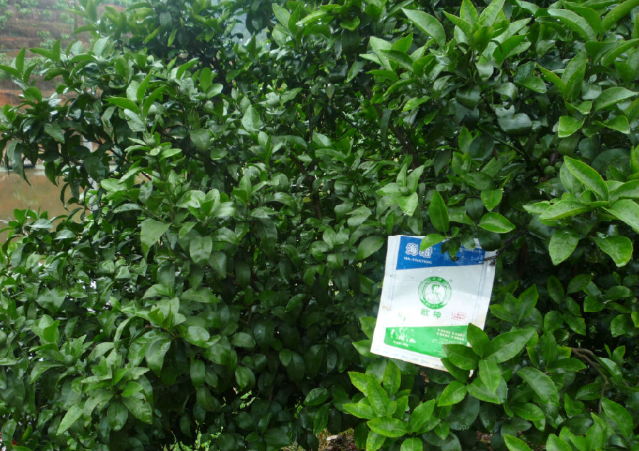 效果:施用歐神-海培后鐘大哥加的柑桔樹安全度過了凍害的侵害,樹勢旺盛,葉色濃綠,生長快速
