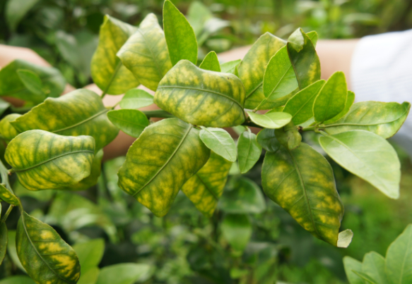 未使用歐神鈣鎂硼鋅鐵+微根露的果樹葉子呈缺素狀