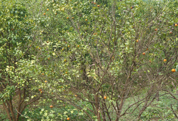 對照組:常規用肥,土壤和示范組屬于同一地塊,黃葉、花葉明顯,樹勢極差