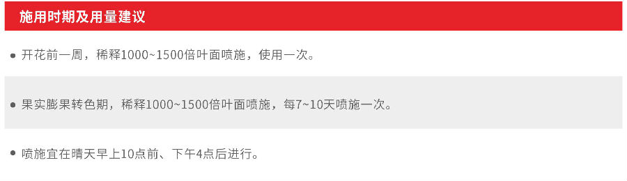2、營養(yǎng)合理,膨果著色:“微果露”中鉀含量450g/L,磷含量300g/L,輔以螯合態(tài)鋅、硼、鐵、錳、銅、鉬等多種微量元素,對于果實(shí)的膨大、轉(zhuǎn)色和糖分的積累,口感的改善,起到了有效的促進(jìn)作用。