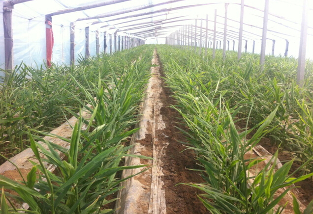 示范試驗情況介紹:試驗時姜苗高約20厘米,大棚姜,對其做微根露和歐神水溶肥的實驗,并留出對比田。準備繼續實驗后期用高鉀水溶肥,然后測產。