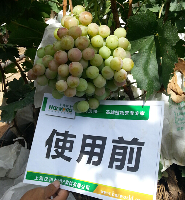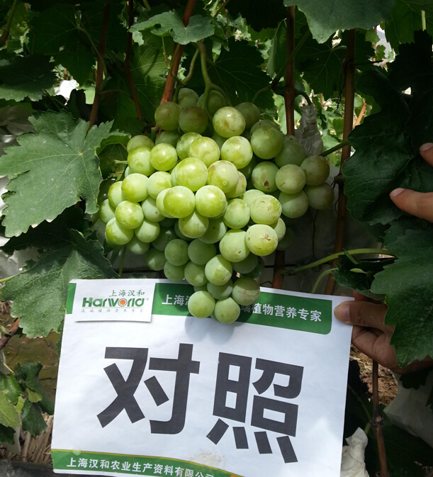 對照田試驗效果:對照的葡萄上色相對較慢,還是很青的顏