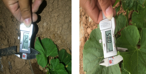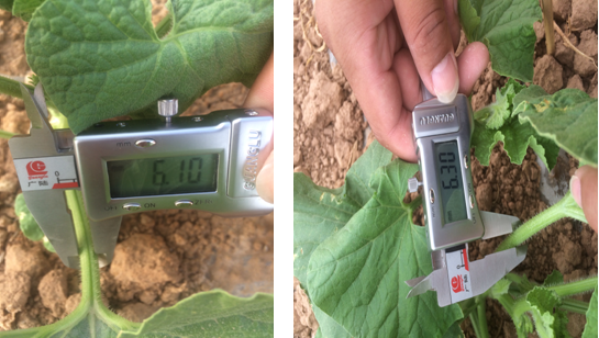 使用組的甜瓜苗,莖稈粗度為6.30mm;對照組的甜瓜苗,莖稈粗度為6.10mm。說明微根露在促進作物提苗,健壯植株長勢上作用突出。