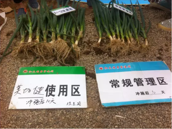 (左邊試驗區(qū)較右邊對照區(qū)的根系發(fā)達)