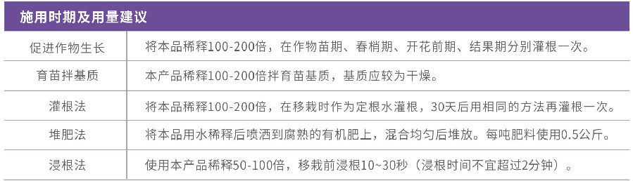 2、活化養(yǎng)分,提高肥效。本品能將土壤中難溶或不溶的磷、鉀轉(zhuǎn)化為可供作物直接吸收利用的可溶性磷、鉀,活化土壤有機(jī)與無機(jī)養(yǎng)分,提高肥料利用率,促進(jìn)養(yǎng)分循環(huán)、長效吸收利用。